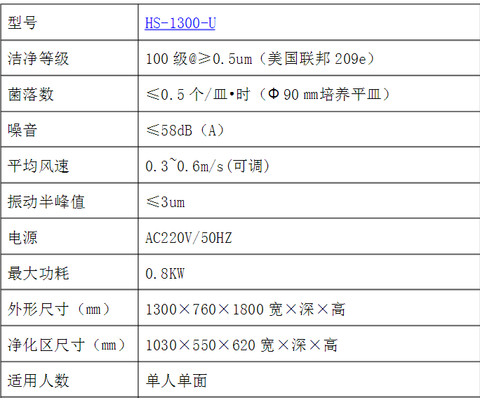 HS-1300-U超凈工作臺介紹